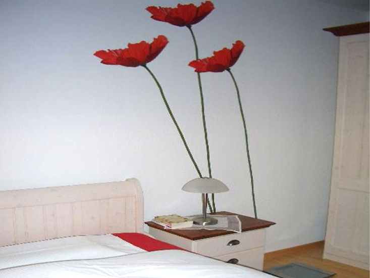 In den Zimmern befindet sich breite Betten, eine Kommode und ein Kleiderschrank. Das Badezimmer ist mit Waschbecken, WC und Duschwanne ausgestattet.